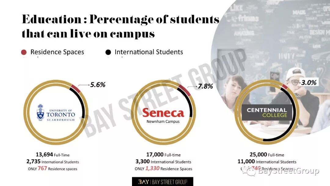 多伦多各大高校缺宿舍!25万包车位的亲情走心盘The Borough临近三所高校, 多大世嘉堡校区,Seneca College和Centennial College。任何一所学校,床位不足学生总数的8%!