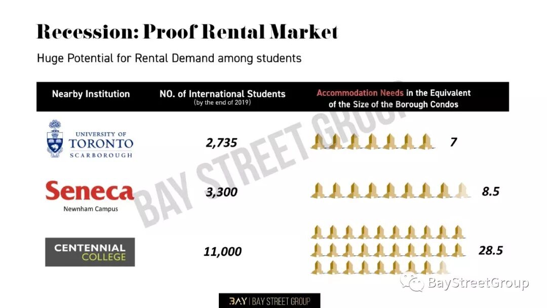 Seneca和Centennial College的留学生人数更是远远高于多大。大批量的潜在租客在The Borough四周环伺,力抢出行便捷、有车位的好位置。The Borough就是一个超赞的选择!